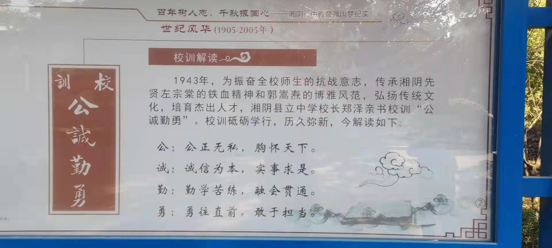 1944年5月27日,日軍侵縣,湘陰淪陷,學校疏散。次年2月,由鄭澤校長集聚失散生在洪源洞、清溪、道南、文洲、錫安鄉(xiāng)等五處僻靜鄉(xiāng)村設立分班,在敵騎縱橫中采取敵來我散,敵去我聚的方式授業(yè),度過了一段艱難的歲月。