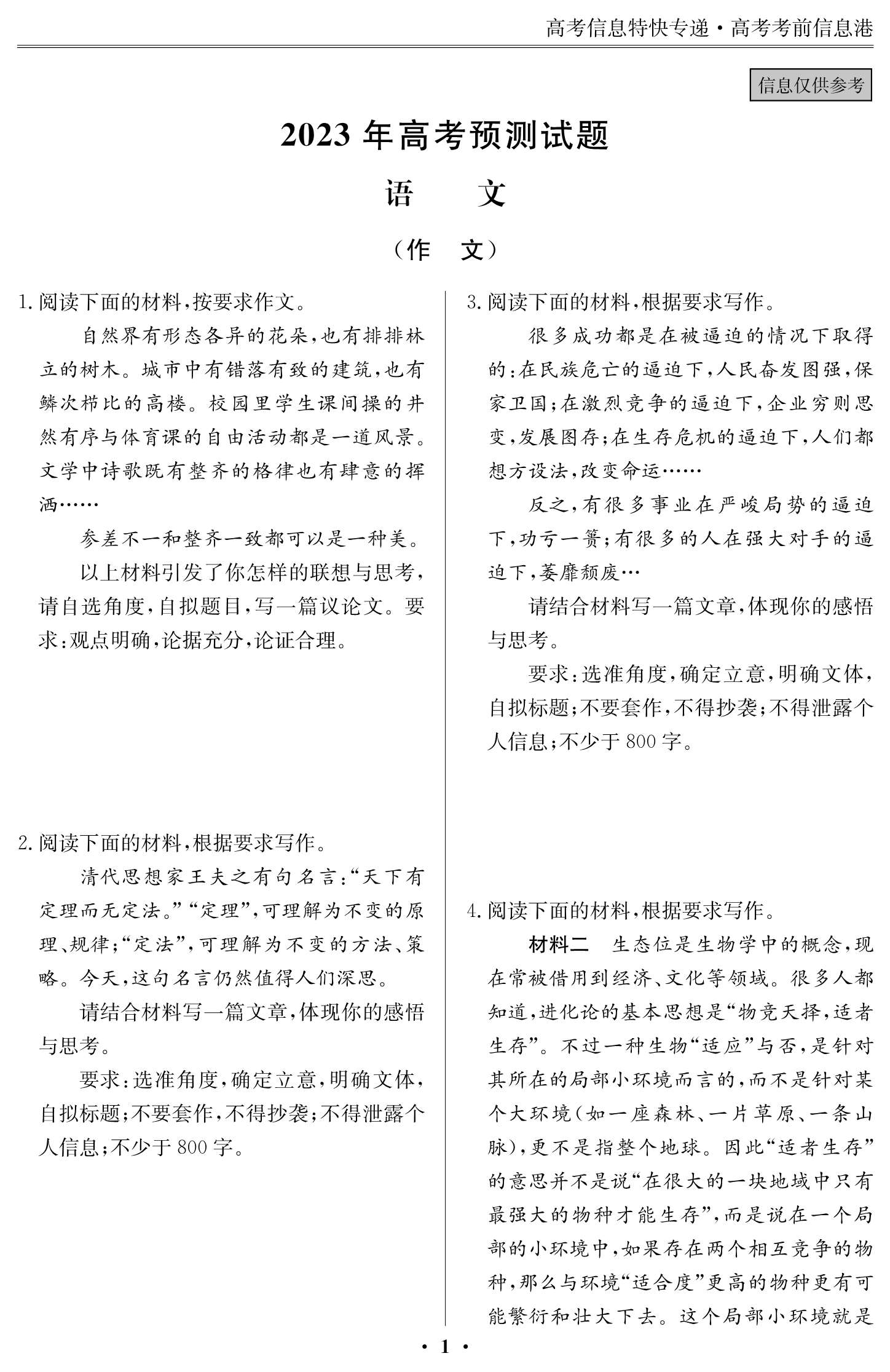 2023年高考考前預(yù)測(cè)信息補(bǔ)充內(nèi)容(一)5月30日