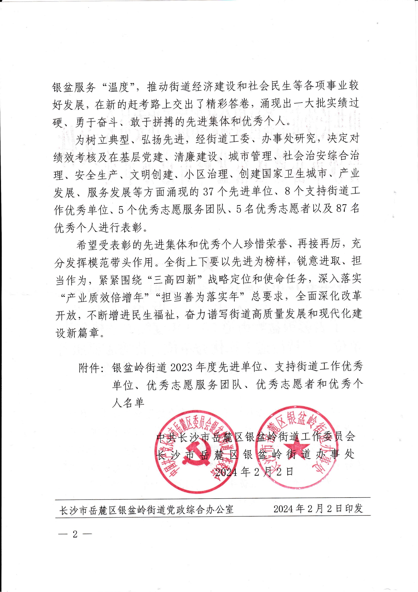 2024年2月3日,銀盆嶺街道在長沙市人民檢察院三樓會議室舉行2023年度工作總結(jié)表彰大會,湖南炎德文化實業(yè)有限公司榮獲支持街道工作優(yōu)秀單位。