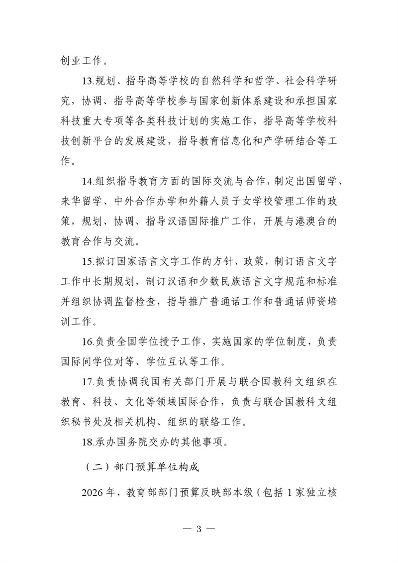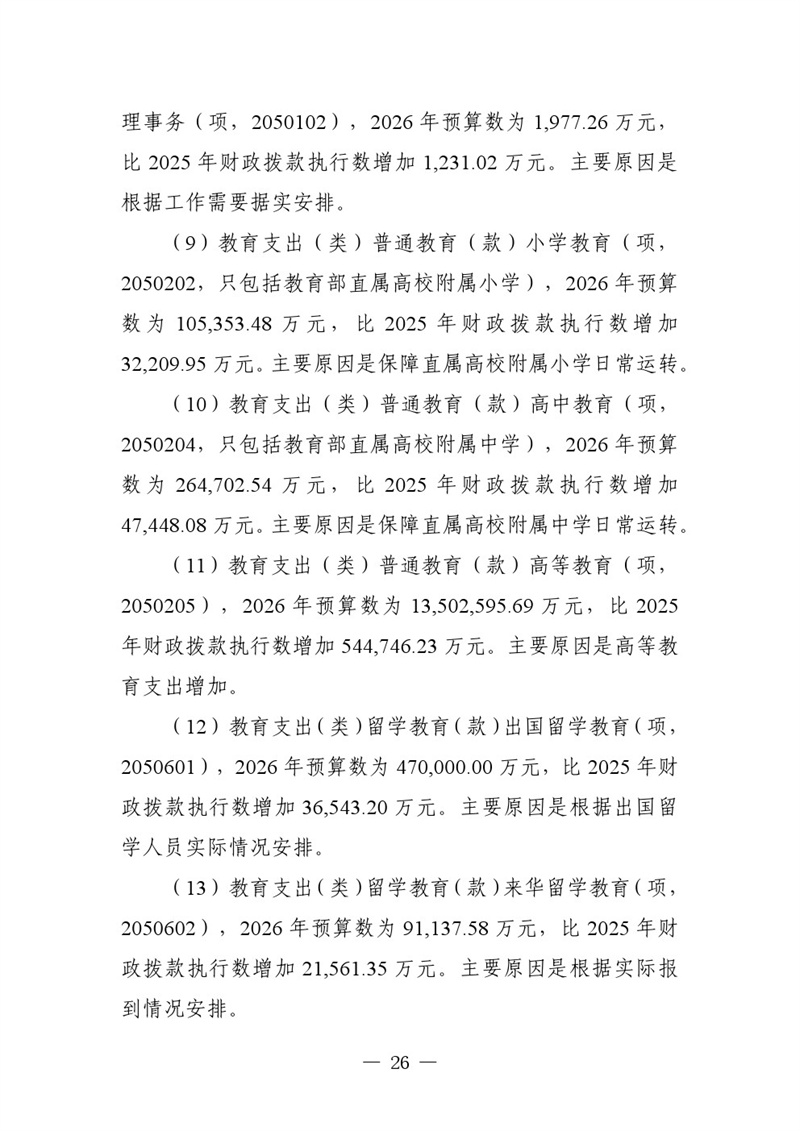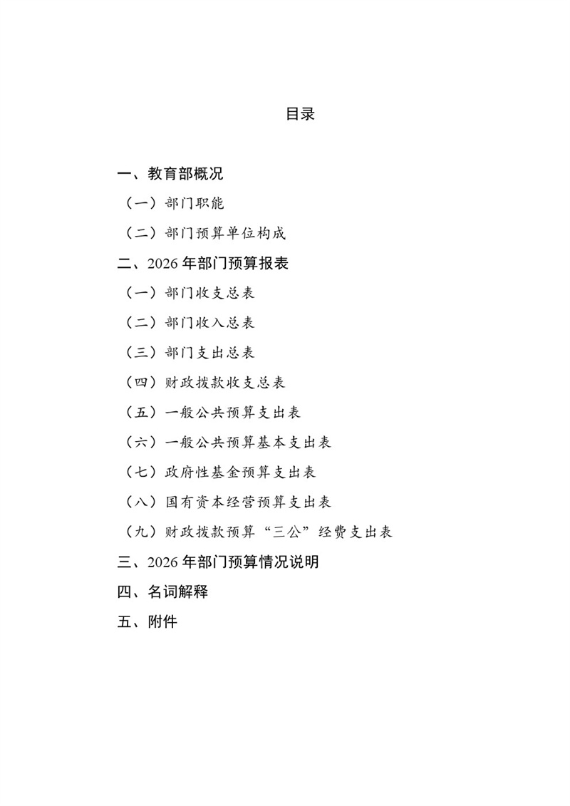 教育部2026年部門(mén)預(yù)算